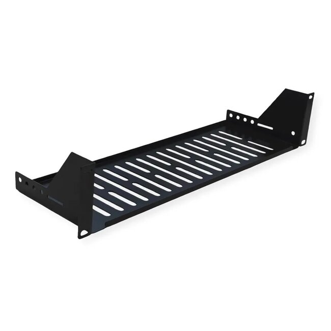 Verwenden Sie dieses Ablagebrett für eine sichere Aufbewahrung von Komponenten, die nicht direkt in einem 19-Zoll-Rack montiert werden können. Dank der erhöhten Ränder bleiben Geräte stabil an ihrem Platz und ein Verrutschen wird verhindert.