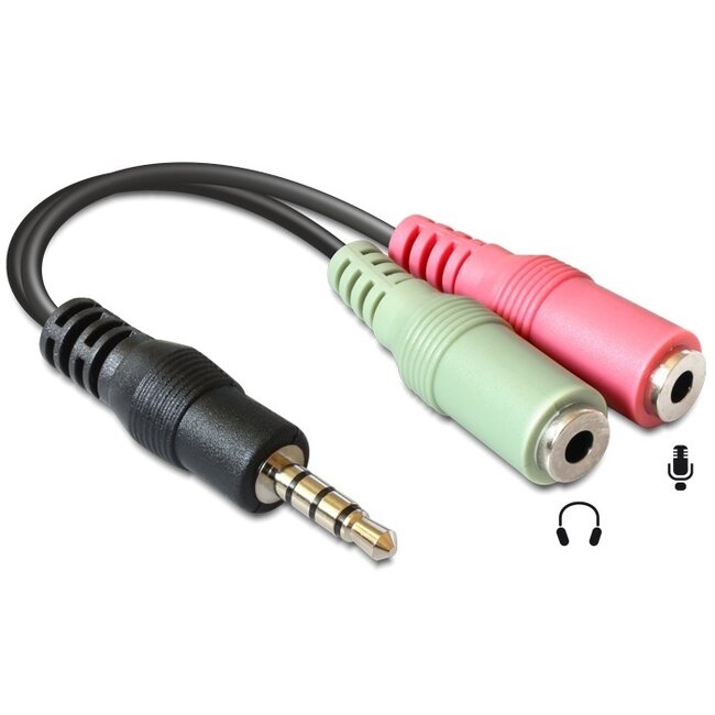 Verwenden Sie diesen Adapter, um ein Headset mit 2 Anschlüssen (grün für Audio und rosa für Mikrofon) an ein Notebook, Telefon oder eine Spielkonsole mit einem 4-poligen 3,5mm Klinkenanschluss anzuschließen. Dieses Kabel folgt der OMTP-Belegung.