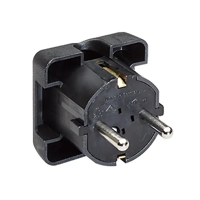 Der CEE 7/4 Stromstecker ist der Standard-Steckdosenstecker für unter anderem Deutschland und die Niederlande. Dieser geerdete Steckdosenstecker wird auch Schuko genannt, eine Abkürzung des deutschen Wortes Schutz-Kontakt, und kann in eine ursprünglich deutsche Steckdose (CEE 7/3) eingesetzt werden. Dieser Stecker ist nicht geeignet für französische Steckdosen (CEE 7/5) mit hervorstehendem Erdungsstift. Der CEE 7/4 passt zwar in eine dänische Typ-K-Steckdose, jedoch geht dabei die Erdung verloren.