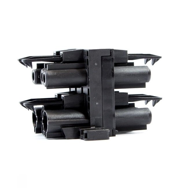 Dieser Stromadapter verfügt über Installationsstecker, was ihn perfekt in ein modulares System mit Installationsstecker-Verbindungen integrierbar macht. Dieses modulare System wird vor allem in Bürobereichen eingesetzt, sodass über ein einziges Stromkabel mehrere Arbeitsplätze mit Strom versorgt werden können, ohne dass Kontakte verloren gehen.