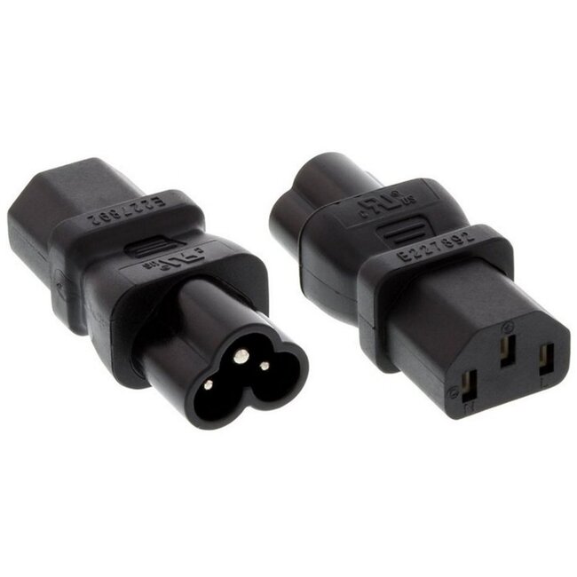 Dieser geerdete Netzadapter ermöglicht die Verwendung eines Netzkabels mit C5-Stecker an einer C14-Netzanschlussbuchse.