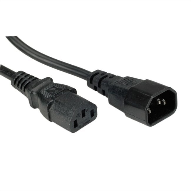 Die C13/C14-Anschlüsse sind für den Betrieb bei 250 Volt und bis zu 10 Ampere ausgelegt. Dies entspricht einer maximalen Leistung von 2500 Watt. Falls Sie ein (leistungsstarkes) Gerät mit C13-Anschluss besitzen, das mehr als 2500 Watt benötigt, ist dies eine ungewöhnliche Kombination, da der C13-Anschluss hierfür nicht ausgelegt ist. Für solche Anwendungen empfiehlt sich die Verwendung eines dickeren Kabels mit 3 x 1,5 mm² Adern. Auf anderen Webseiten werden solche Kabel oft als 16A-Kabel angeboten, was jedoch technisch nicht korrekt ist, da der C13-Stecker hierfür nicht bewertet ist.