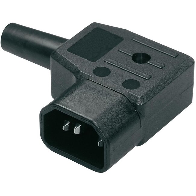 Dieser geerdete Stromanschluss kann an ein 3-adriges Netzkabel angeschlossen werden, um es anschließend mit einem C13 Stecker zu verbinden. Dank der rechtwinkligen Ausführung kann das Kabel direkt im 90° Winkel weggeführt werden.