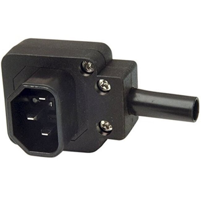 Dieser geerdete Stromanschluss kann an ein 3-adriges Netzkabel angeschlossen werden, um es anschließend mit einem C13 Stecker zu verbinden. Dank der rechtwinkligen Ausführung kann das Kabel direkt im 90° Winkel verlegt werden.