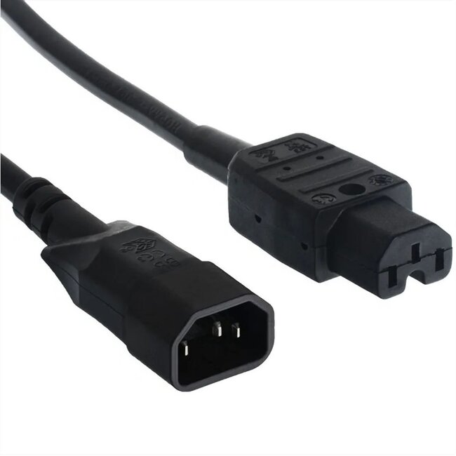 Die C13/C14 Anschlüsse sind für „kalte“ Geräte geeignet (Anwendungen, bei denen die Kontakte nicht wärmer als 70 °C werden). Für „warme“ Geräte (Anwendungen, bei denen die Temperatur der Kontakte bis zu 120 °C erreichen kann), wie Grills, Kochplatten, Gourmet-Sets usw., benötigen Sie C15/C16 Anschlüsse. Ein C15 Stecker passt in eine C14 Buchse, aber ein C13 Stecker passt nicht in eine C16 Buchse.