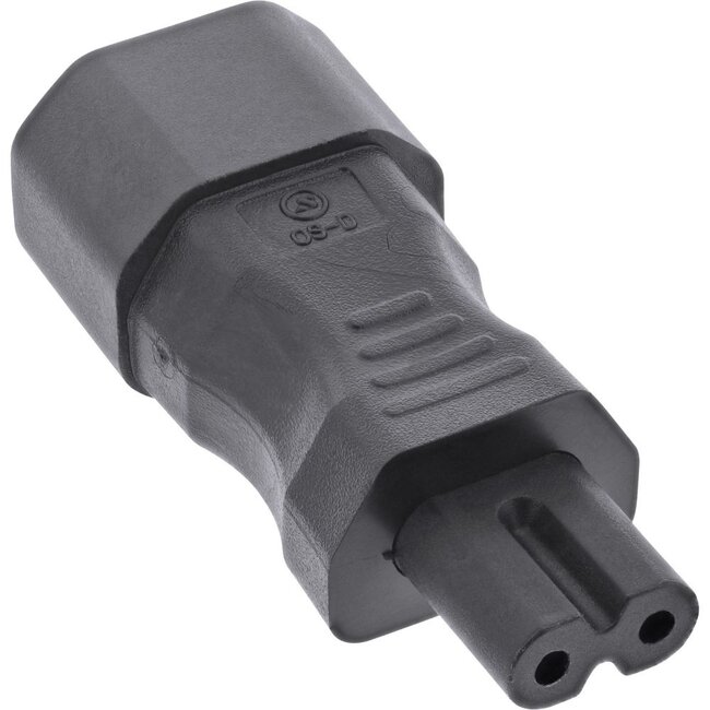 Dieser ungeerdete Netzadapter ermöglicht die Verwendung eines Netzkabels mit C13-Stecker an einem C8-Netzanschluss.