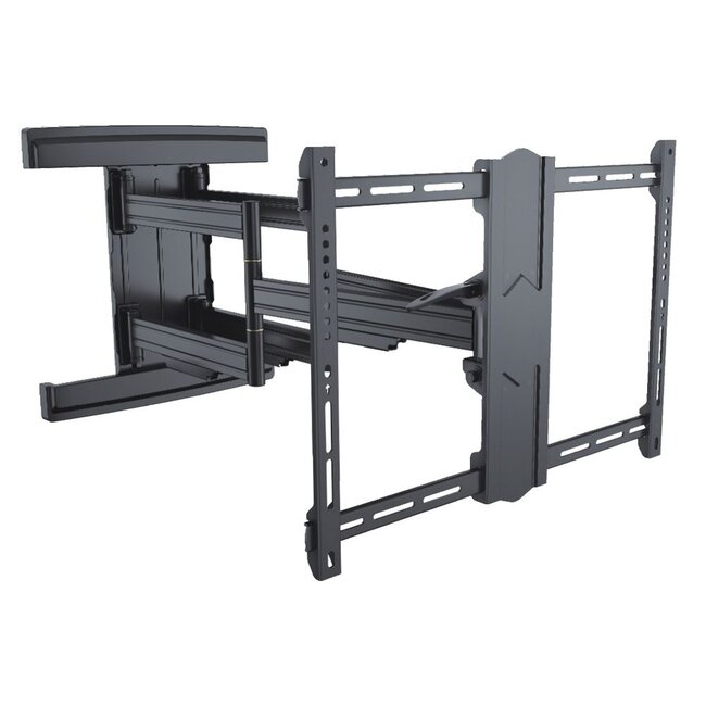 Diese Halterung verfügt über einen extra langen Doppelarm. Der Abstand zwischen Ihrem Bildschirm und der Wand beträgt maximal 81 cm, wenn die Halterung vollständig ausgezogen ist. Das bedeutet, dass Sie auch größere Bildschirme weiter drehen können. Dadurch ist diese Halterung auch für die Montage in einer Ecke geeignet.