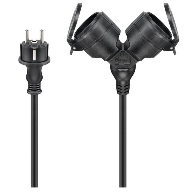 Verwenden Sie dieses Stromkabel, um das Kabel von geerdeten und ungeerdeten Steckern zu verlängern und gleichzeitig auf 2 Anschlüsse zu splitten. So können Sie den Abstand zwischen Ihrem Gerät und der Steckdose vergrößern.