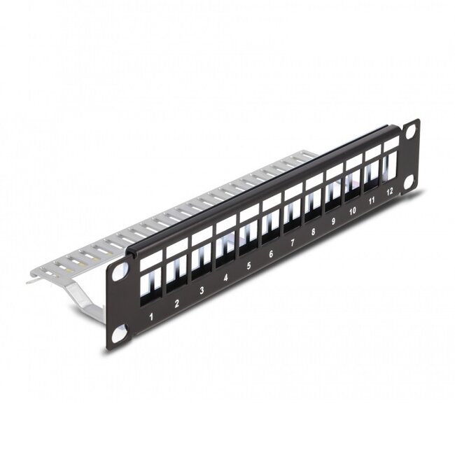 - in diesem Patchpanel können 12 Keystone-Module befestigt werden