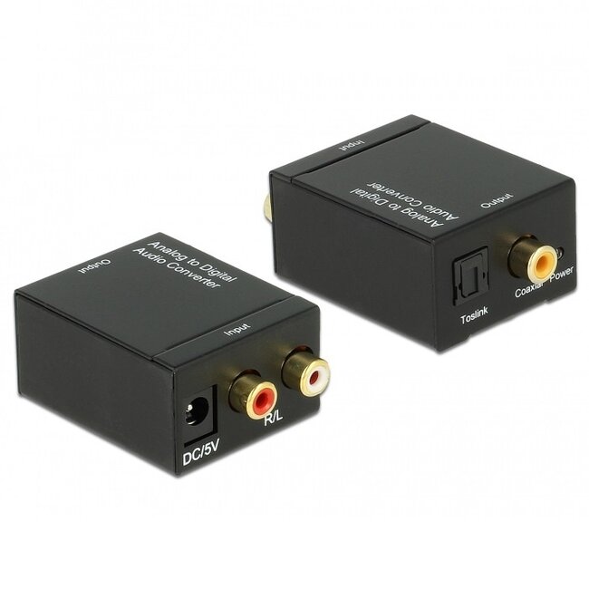 Verwenden Sie diesen Wandler, um ein analoges Audiosignal in ein digitales Audiosignal umzuwandeln. Mit diesem Konverter können Sie ein Gerät mit analogem Stereo-Tulpenausgang (2x RCA) an einen Verstärker/Receiver mit optischem Toslink- oder koaxialem RCA (S/PDIF)-Eingang anschließen.