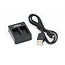 Dieses einfache Ladegerät wird über einen Mini-USB (Typ B) Anschluss mit Strom versorgt. Dies ist ein weit verbreiteter Anschluss bei Kameras, aber auch bei Navigationsgeräten, eReadern und Tablets. Sie können das Ladegerät Ihres Geräts verwenden, um den Akku über dieses kompakte Ladegerät aufzuladen. Ein weiterer Vorteil ist, dass Sie den Akku unterwegs z.B. über eine Powerbank laden können.