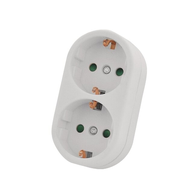 Mit diesem Durchgangsstecker können Sie 2 geerdete Stecker an eine geerdete Steckdose anschließen.