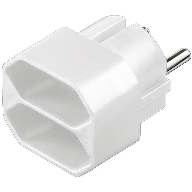 Dieser Durchgangsstecker ermöglicht den Anschluss von 2 ungeerdeten Steckern an eine geerdete Steckdose. Der Stecker ist sehr kompakt gestaltet, sodass er keine benachbarten Steckdosen an Ihrer Wand- oder Mehrfachsteckdose blockiert.