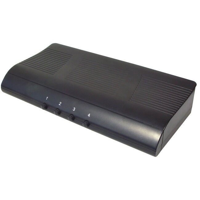 Dieser Umschalter arbeitet mechanisch. Das bedeutet, dass der Schalter die Leitungen direkt zum Bildschirm der gedrückten Buchse verbindet. Es wird keine Elektronik verwendet, daher entsteht kein Stromverbrauch.