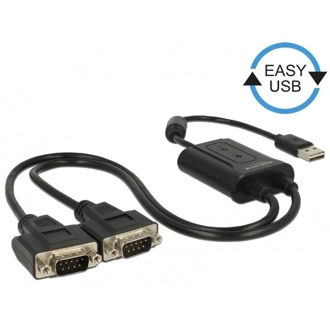 Dieser Konverter ermöglicht es Ihnen, bis zu 2 serielle Geräte mit 9-poligem SUB-D RS232 Anschluss an einen Computer oder Laptop mit USB Typ A Anschluss anzuschließen.