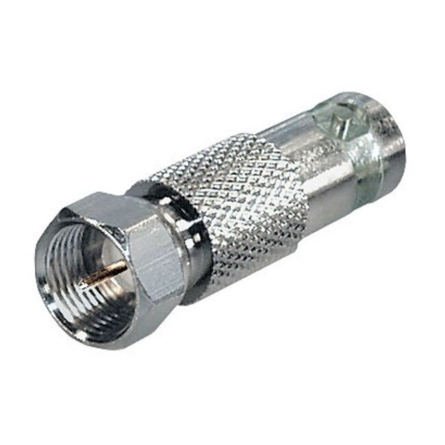 Verwenden Sie diesen Adapter, um einen BNC-Stecker in einen F-Stecker umzuwandeln. So können Sie einen männlichen BNC-Stecker mit einer weiblichen F-Buchse verbinden.