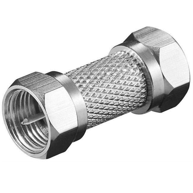 Kupplungsstück, mit dem Sie zwei F weibliche Anschlüsse verbinden können. Mit diesem Verbindungsadapter können Sie beispielsweise einen Splitter oder Multitap direkt, ohne ein Kabel dazwischen, mit einem F-Anschluss, etwa von einem Antennenverstärker, verbinden.