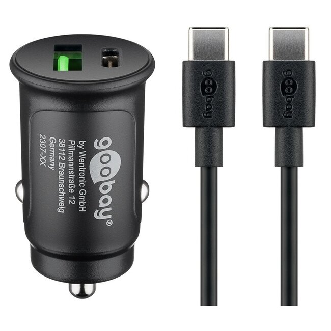 Verwenden Sie dieses universelle USB-Autoladegerät, um Ihre tragbaren Geräte über die USB Typ C- und USB Typ A-Anschlüsse aufzuladen.