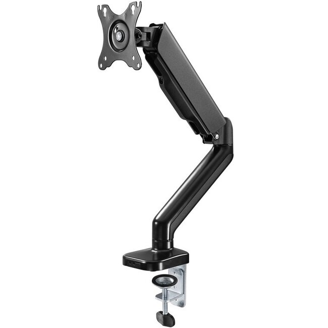 Verwenden Sie diese universelle Schreibtischhalterung für Flachbildschirme. Mit dieser interaktiven, vollständig beweglichen Halterung können Sie Ihren Bildschirm drehen, schwenken, neigen und rotieren. Dank der integrierten Gasdruckfeder lässt sich Ihr Bildschirm zudem nach oben und unten verstellen. Durch die Möglichkeit, den Bildschirm zu neigen, zu drehen, zu schwenken und vertikal zu verstellen, erreichen Sie stets den perfekten Betrachtungswinkel und vermeiden störende Lichtreflexionen.