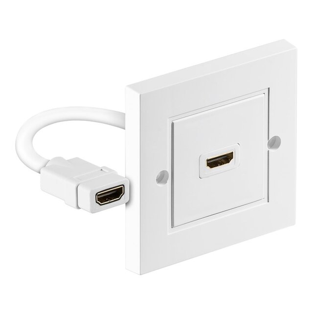 Verwenden Sie diesen Adapter, um einen HDMI-Anschluss in einer Wand, einem Paneel, einem Schaltschrank, einem Fahrzeug oder an einem anderen gewünschten Ort zu realisieren. Diese Anschlussdose passt in die Öffnung einer herkömmlichen Wandsteckdose (z.B. für TV, Telefon oder Internet). Die Abmessungen der äußeren Abdeckplatte betragen 86 x 86 mm, die der mittleren Abdeckplatte 50 x 50 mm.