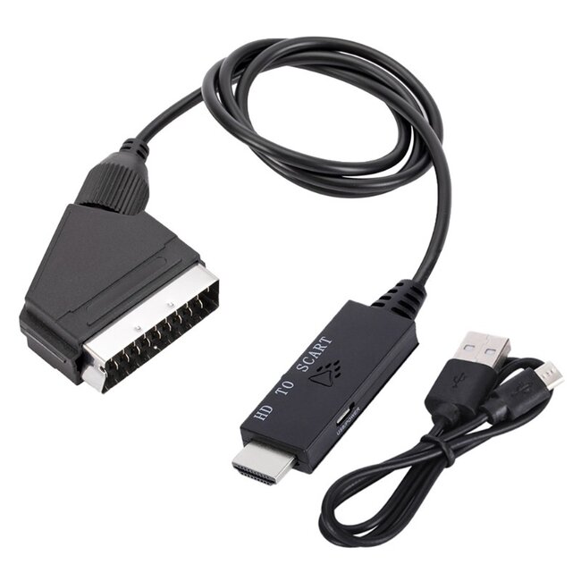 Verwenden Sie diesen Konverter, um ein Gerät mit HDMI-Ausgang an einen Fernseher mit Scart-Eingang anzuschließen. Viele ältere Röhrenfernseher, aber auch die erste Generation von Flachbildfernsehern verfügen über diesen Scart-AV-Eingang.