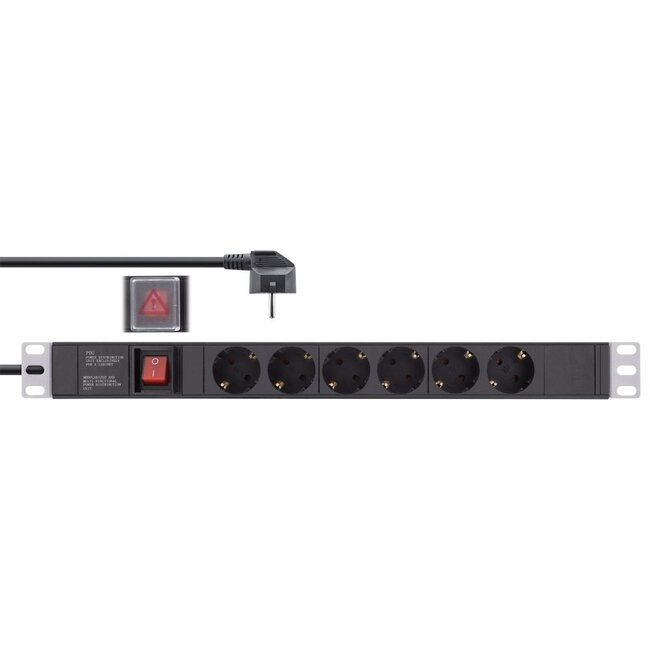 InLine 19'' Steckdosenleiste - CEE 7/7 - 6x CEE 7/3 - mit Schalter / zusätzliche Montageoptionen