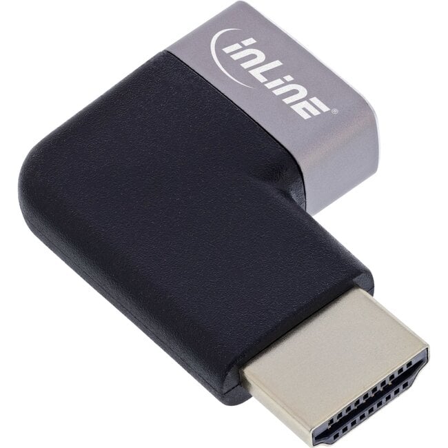 Verwenden Sie diesen HDMI-Adapter, um einen HDMI-Anschluss rechtwinklig mit einem herkömmlichen HDMI-Kabel anzuschließen. Durch das Anbringen dieses Adapters an den HDMI-Stecker verwandeln Sie den geraden Stecker in einen rechtwinkligen Stecker.