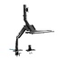Verwenden Sie diese universelle Schreibtischhalterung für Flachbildschirme. Mit dieser vollständig beweglichen Halterung können Sie Ihren Bildschirm drehen, schwenken, neigen, rotieren und in der Höhe verstellen. Durch die Möglichkeit, Ihren Bildschirm zu neigen, zu drehen und vertikal zu verstellen, erreichen Sie stets den perfekten Betrachtungswinkel und vermeiden störende Lichteinfall. Darüber hinaus bietet diese Halterung die Möglichkeit, Ihre Tastatur und Maus auf einem Plateau zu platzieren, das sich vollständig mit der Halterung mitbewegt. Dadurch ist diese Halterung eine ausgezeichnete Alternative zu beispielsweise einem Sitz-Steh-Schreibtisch.