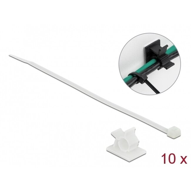 Wenn Sie Kabelbinder an einem Schreibtisch, Schrank oder Sockelleiste verwenden, ist es ordentlich, wenn das zusammengebundene Kabelbündel an der richtigen Stelle bleibt. Mit den mitgelieferten selbstklebenden Kabelklemmen ist dies einfach zu realisieren. Sie können die Kabelklemme einfach aufkleben und das zusammengebundene Kabelbündel problemlos befestigen.