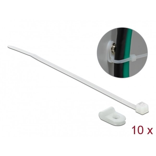 Wenn Sie Kabelbinder an einer Wand oder einem Möbelstück verwenden, ist es wichtig, dass das gebündelte Kabelpaket an der richtigen Stelle bleibt. Mit den mitgelieferten Montageklemmen ist dies einfach zu realisieren. Die Montageklemme kann einfach angeschraubt und der Kabelbinder problemlos befestigt werden.