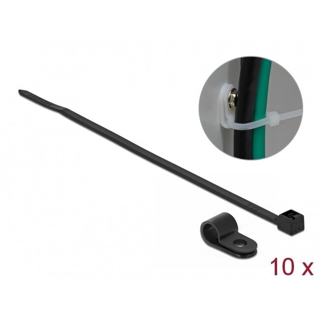 Wenn Sie Kabelbinder an einer Wand oder einem Möbelstück verwenden, ist es wichtig, dass das gebündelte Kabelpaket an der richtigen Stelle bleibt. Mit den mitgelieferten Montageklammern ist dies einfach zu realisieren. Die Montageklammer kann einfach festgeschraubt und der Kabelbinder problemlos befestigt werden.