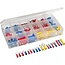 Komplettes Kabelschuh-Sortiment. 18 verschiedene Kabelschuhe, insgesamt 200 Stück. Wird in einer praktischen Sortimentsbox geliefert.