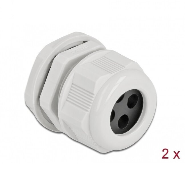 DeLOCK Kabelverschraubung für 3 runde Kabel | PG21 | 3x 6 mm | IP68 | Grau | 2 Stück