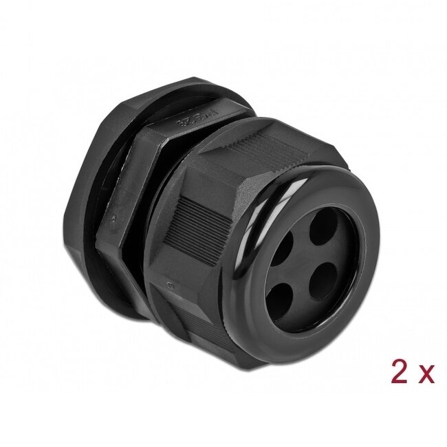 DeLOCK Kabelverschraubung für 4 runde Kabel | PG29 | 4x 8 mm | IP68 | Schwarz | 2 Stück