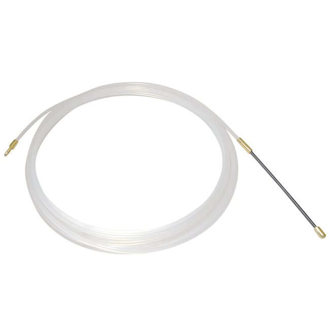 Verwenden Sie diese Kabelzughilfe, um Kabel durch Kabelkanäle, Rohre und Schläuche zu ziehen. Auch geeignet für Kanäle mit Bögen. Achten Sie darauf, das Kabel fest an der Befestigungsöse am Anfang des Zugdrahts zu befestigen. Bei Strom-, Netzwerk- und Telefonkabeln kann das Kabel (oder der Leiter) meist einfach an der Schlaufe verknotet werden. Bei Koaxialkabeln müssen Sie etwas kreativer sein, um das Kabel oder den Kern sicher zu befestigen, damit es beim Ziehen nicht verrutscht.