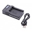 Dieses einfache Ladegerät wird über einen Micro-USB (Typ B) Anschluss mit Strom versorgt. Dies ist ein gängiger Anschluss bei (neueren) Kameras sowie bei Smartphones und Tablets. Sie können das Ladegerät Ihrer Kamera, Ihres Smartphones oder Tablets verwenden, um den Akku mit diesem kompakten Ladegerät aufzuladen. Ein weiterer Vorteil ist, dass Sie den Akku unterwegs z.B. über eine Powerbank aufladen können.