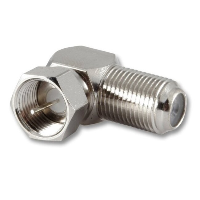 Dieser Adapter ermöglicht einen rechtwinkligen Anschluss an eine F-Buchse. Ideal für Geräte mit wenig Platz hinter dem Anschluss und/oder wenn ein rechtwinkliger Zugang zum Anschluss gewünscht wird.