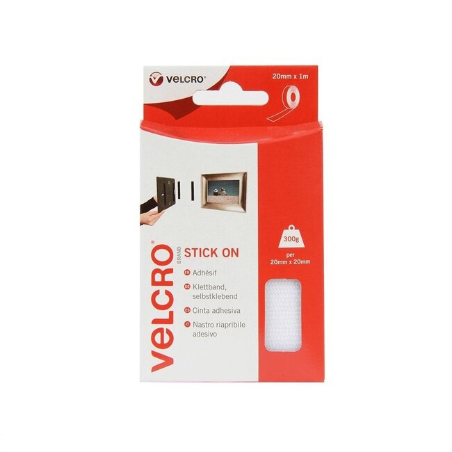Velcro Stick On Klettband Rolle 2-teilig (selbstklebend) 20mm / weiß (1 Meter)