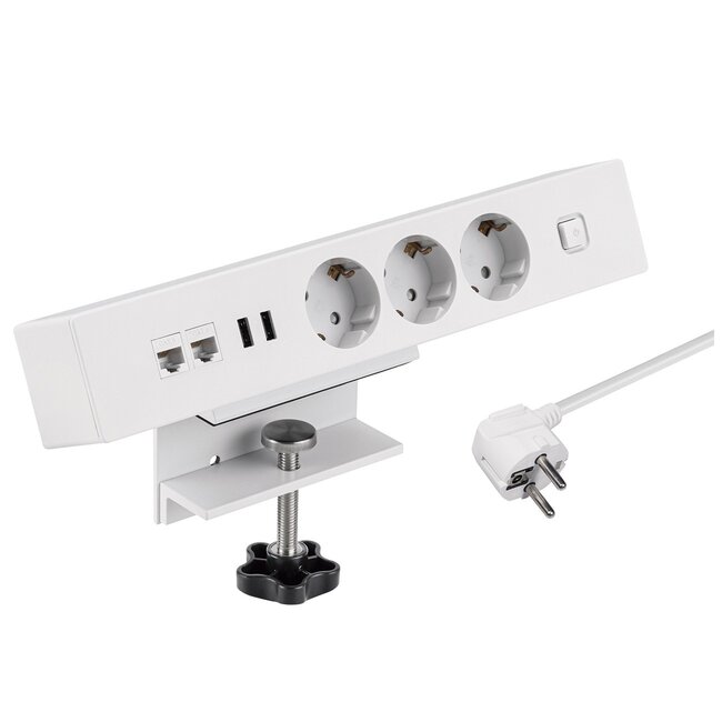 MaxTrack Steckdosenleiste mit 3 Steckplätzen, 2x USB und 2x RJ45 – für den Schreibtisch