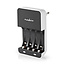Verwenden Sie dieses Nedis Batterieladegerät, um gleichzeitig 4 NiMH-Akkus aufzuladen. Das Ladegerät ist geeignet für bis zu 4 AA- und/oder AAA-Batterien.