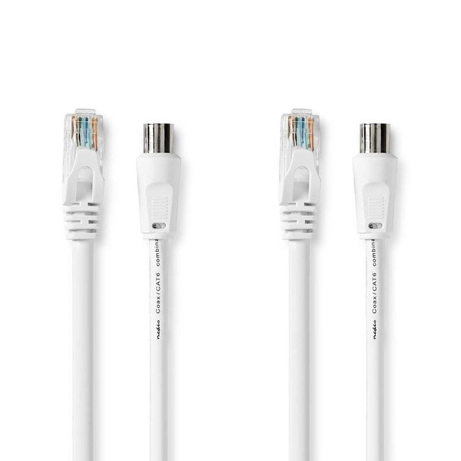 Verwenden Sie dieses Kombikabel für Antenne und Netzwerk, um Fernseher, (interaktive) Receiver, Radios und andere Geräte mit Coax IEC-Anschluss und RJ45-Anschluss zu verbinden.