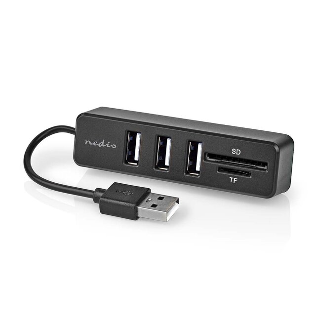 Erweitern Sie Ihren PC, Notebook oder ein anderes Smart-Media-Gerät mit diesem externen USB-Hub um 3 zusätzliche USB-Anschlüsse und 2 Speicherkarten-Slots.