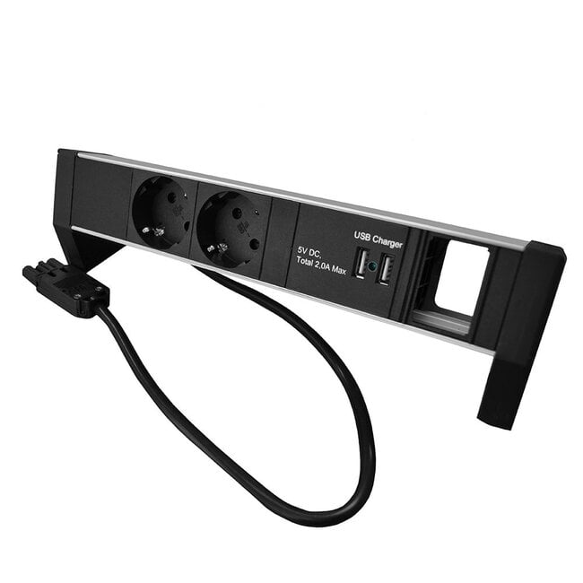 Diese geerdete Steckdosenleiste im Desktop-Design kann in einem 3-poligen modularen Installationssteckersystem verwendet werden. Die Steckdosenleiste verfügt außerdem über eine Modulöffnung, in der Sie nach Wunsch eine Anschlussmöglichkeit realisieren können.