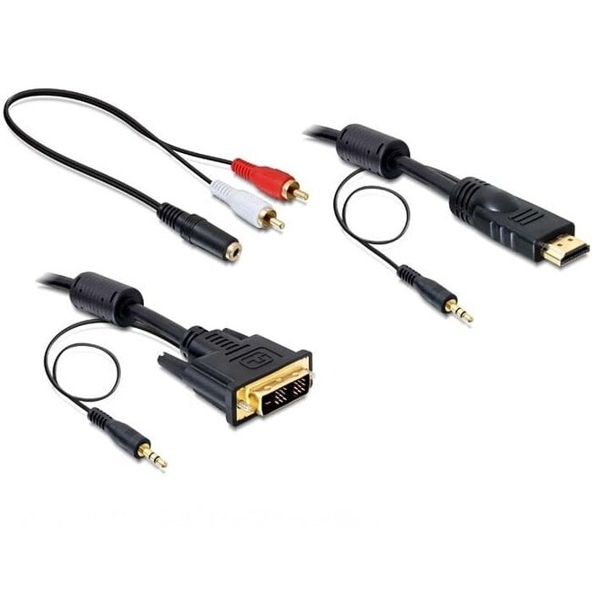Ein DVI-Kabel dient ausschließlich zur Übertragung von Bildsignalen. Für die Übertragung von Ton ist daher ein separates Kabel erforderlich. Dieses Kabel enthält ein separates Audiokabel, das im gleichen Mantel integriert ist. Sie können dieses Kabel verwenden, wenn beide Geräte über 3,5 mm Klinken- und/oder Cinch Stereo 2RCA Audioanschlüsse verfügen.
