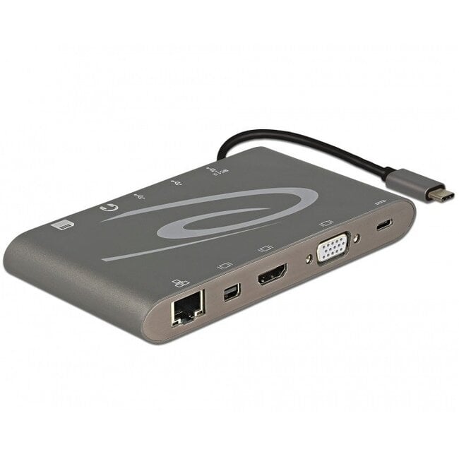 Erweitern Sie Ihren Computer, Notebook, Smartphone oder ein anderes Gerät mit USB Typ C Ausgang mit diesem Multiport-Dockingstation um einen HDMI-Anschluss, Mini DisplayPort, VGA-Anschluss, 3,5 mm Headset-Buchse, RJ45 Netzwerkanschluss, 3 USB-A Datenports, Micro SD und SD Kartenleser sowie einen USB-C Ladeanschluss.