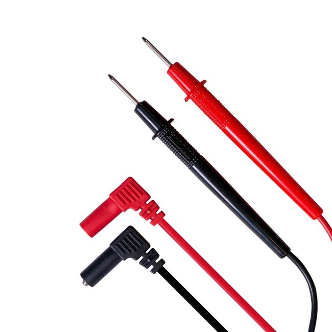 Winkelige Messleitungen für Multimeter mit isolierten Steckverbindern.
