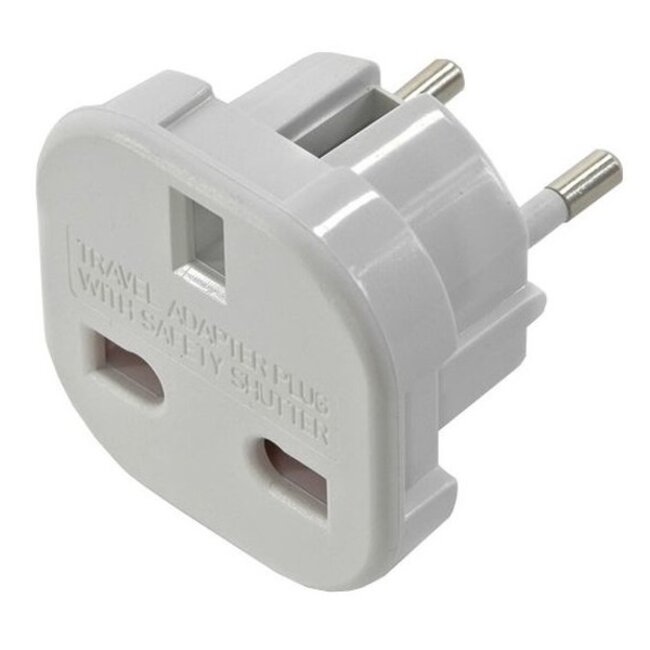Verwenden Sie diesen 3-poligen geerdeten England-Reiseadapter, um elektrische Geräte mit einem britischen Stecker an Steckdosen in Westeuropa anzuschließen. Der britische Stecker ist weltweit eine häufige Anschlussart und kommt daher auch bei Geräten aus anderen Ländern vor.