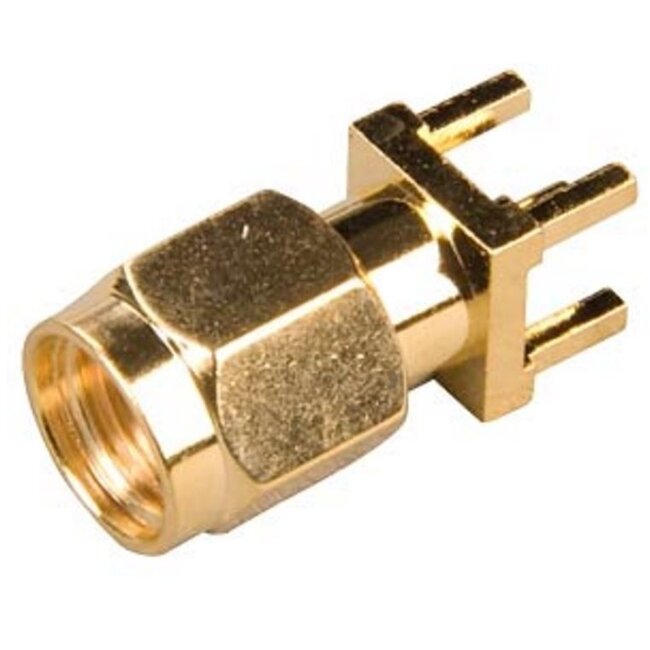 Verwenden Sie diesen 50 Ohm Gehäusestecker, um eine männliche SMA Reverse Polarity (SMA-RP) Verbindung auf einer Leiterplatte (PCB) herzustellen.
