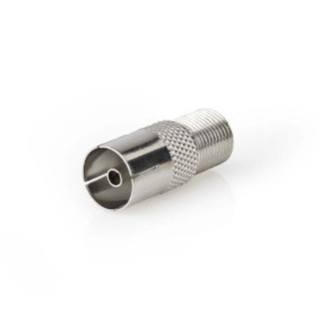 Satelliten- & Antennenadapter | F-Buchse | IEC (Koax) Buchse | Vernickelt | 75 Ohm | Gerade | Metall | Silber | 1 Stück | Box