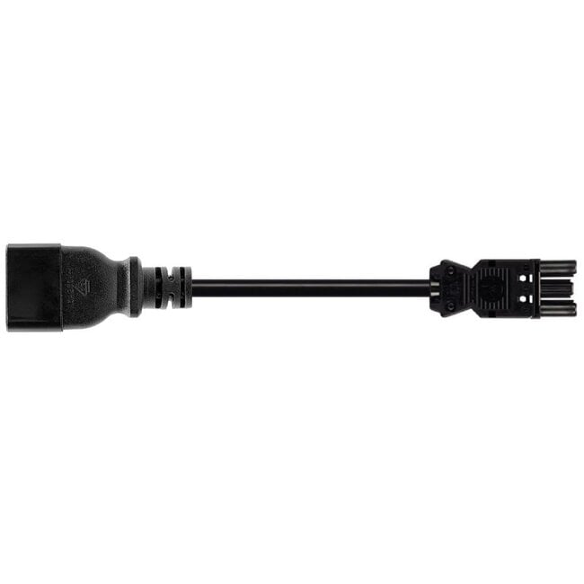 Dieses geerdete Netzkabel können Sie verwenden, um eine Komponente mit Installationsstecker, meist eine Steckdosenleiste, mit einem IEC C19 Anschluss einer USV (Unterbrechungsfreie Stromversorgung) oder PDU (Power Distribution Unit) zu verbinden.